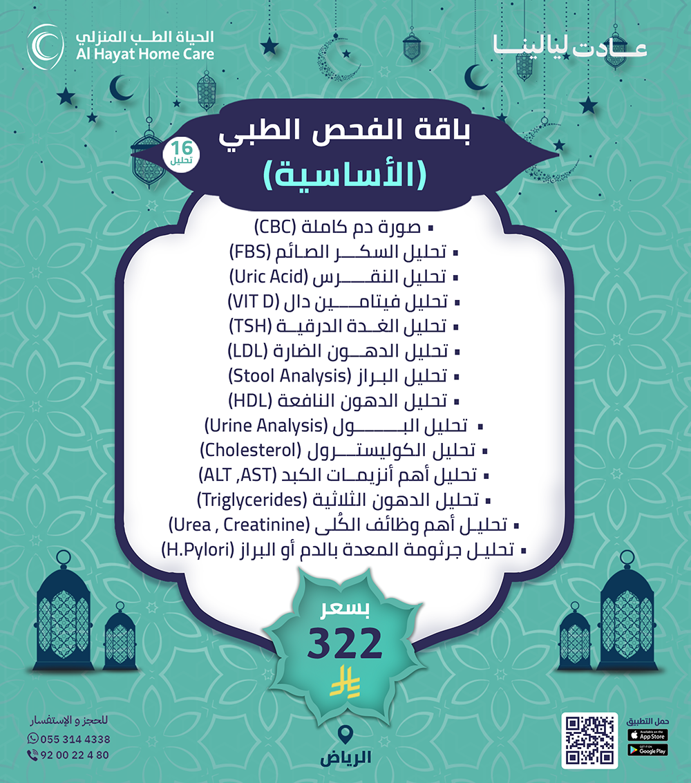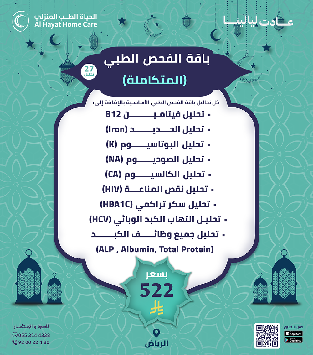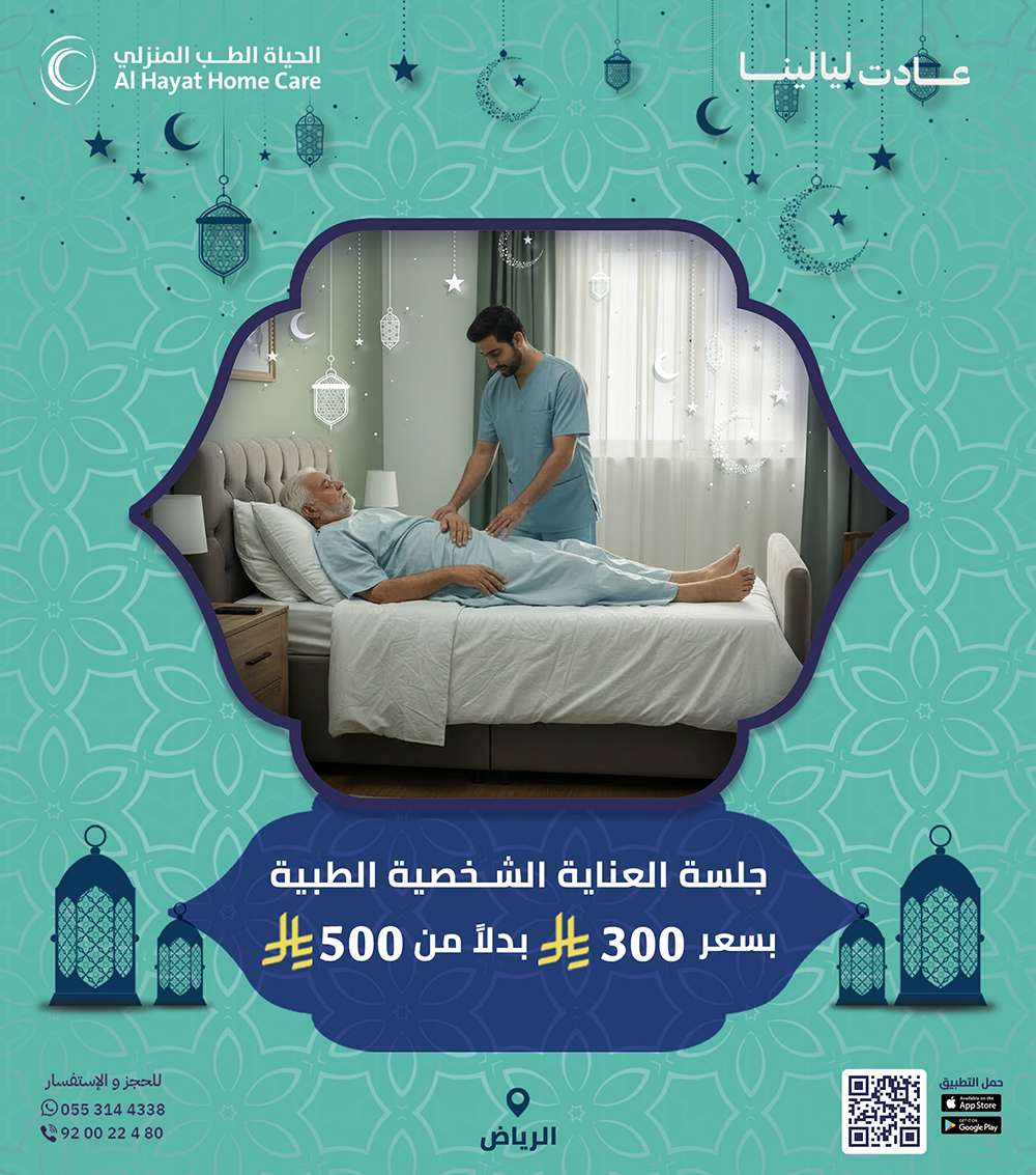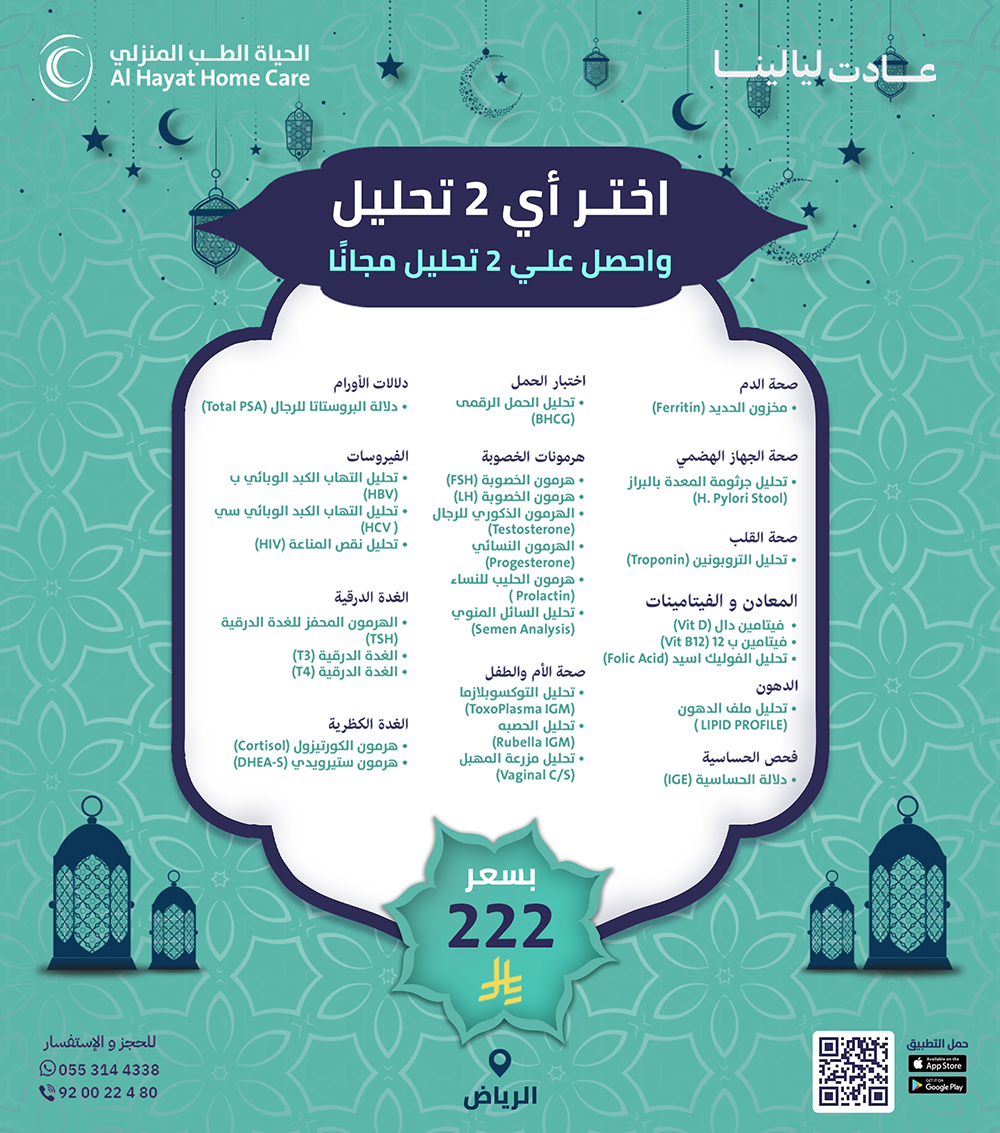بدل لا تتعب بالمشاوير والانتظار، الحياة للطب المنزلي توفّر لك خدمة الرعاية الطبية المنزلية بكل سهولة. طبيب منزلي، تمريض منزلي، علاج طبيعي بالمنزل، وتحاليل منزلية… كل شي نجيك فيه للبيت ضمن عروض رمضان.