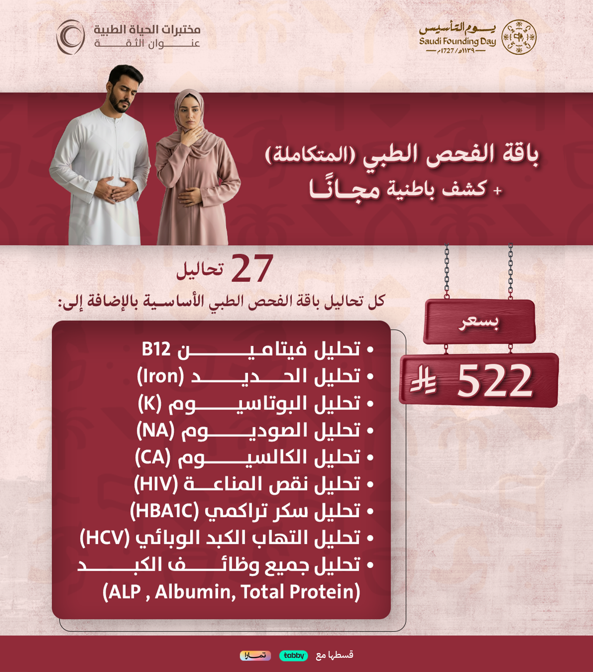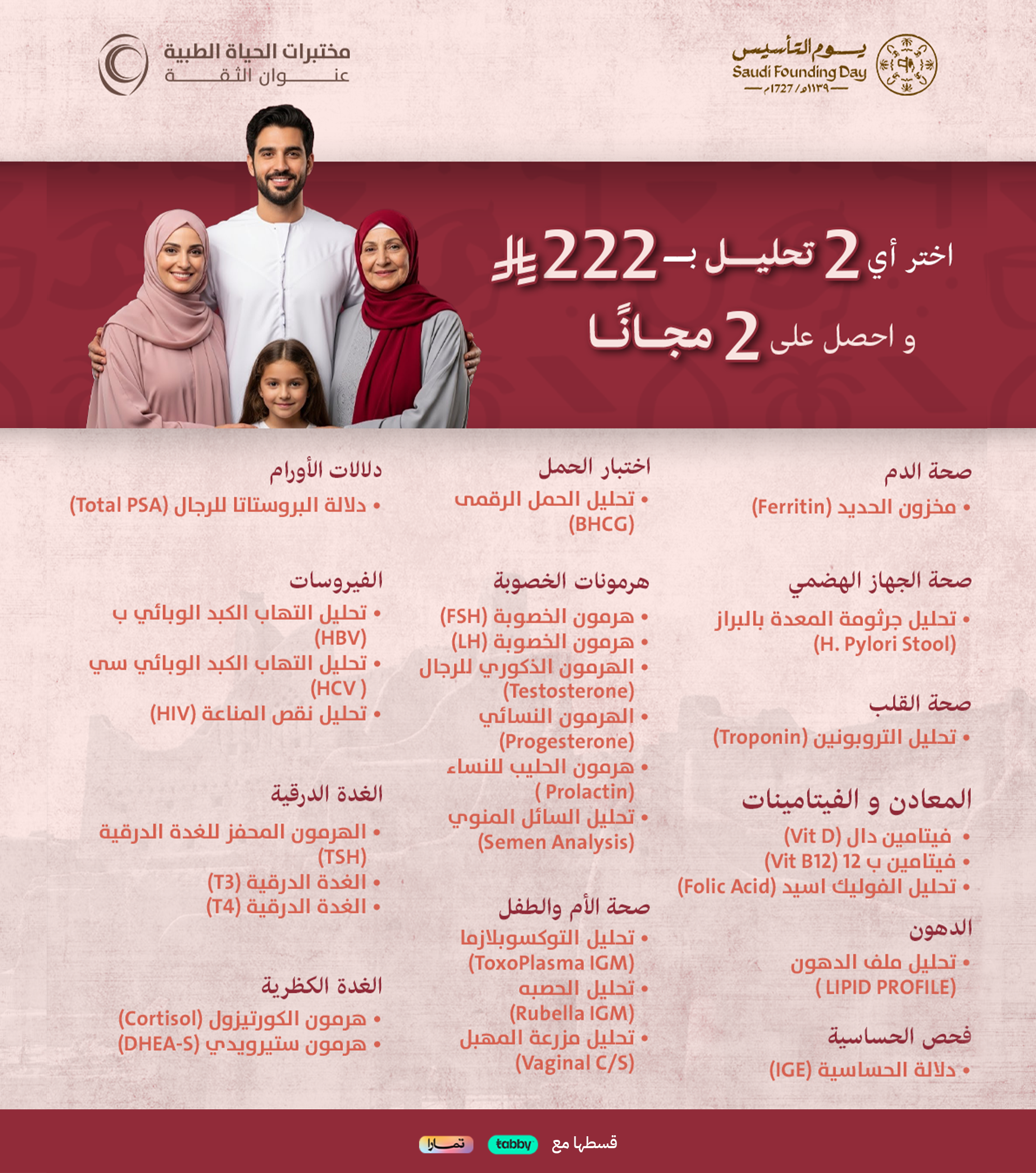 احتفاءاً برمضان ، تم تمديد عروض وخصومات سوم التأسيس على التحاليل فردية والباقات الشاملة لتلبية جميع احتياجاتك الصحية.
